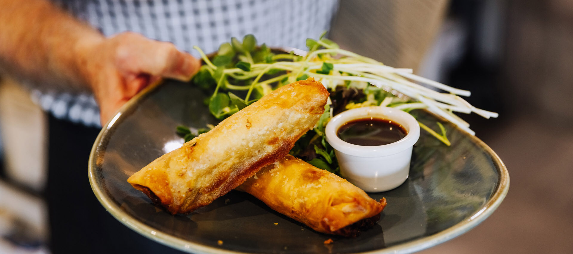 with crispy Asian slaw, Thai dressing, coriander, lime & marmalade dipping sauce